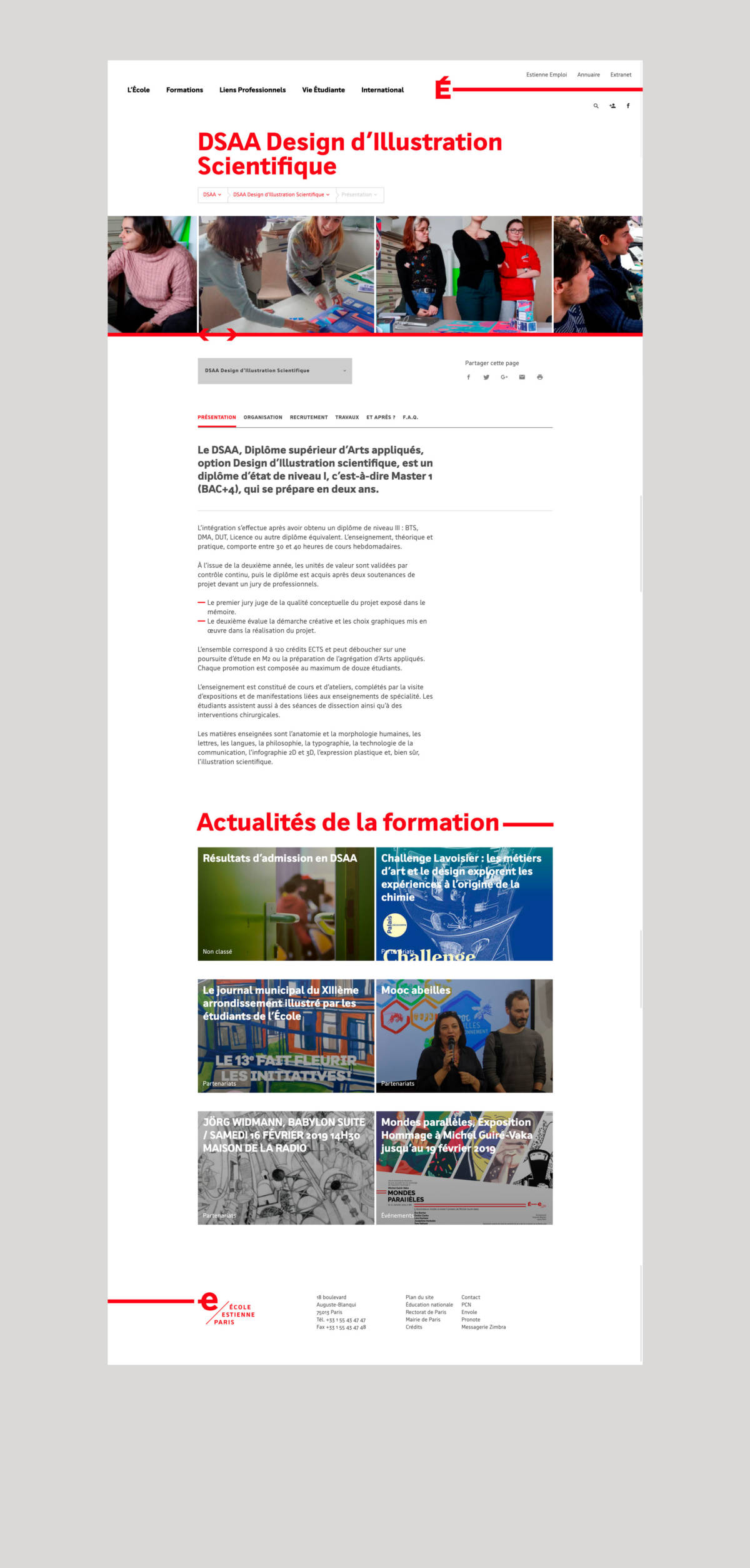 Côté fonctionnalités, le nouvel outil construit par le Studio Travers Média n’est pas qu’une vitrine, il permet de gérer la mise en ligne des travaux des élèves, de remplir sa fiche dans l’annuaire, de compléter son dossier d’inscription en ligne pour les élèves reçus, et de créer mailings et newsletters. De quoi booster l’image de marque de l’École et faire gagner à tous ses acteurs un temps de saisie et de gestion considérable.